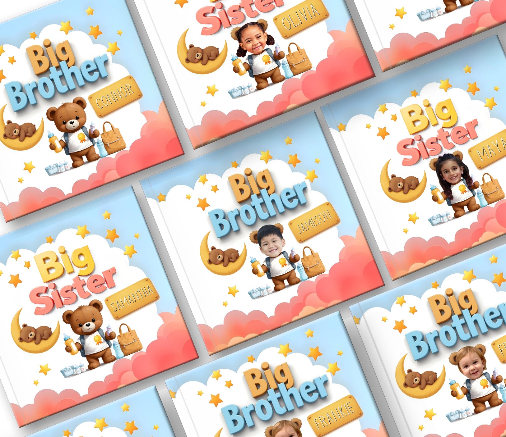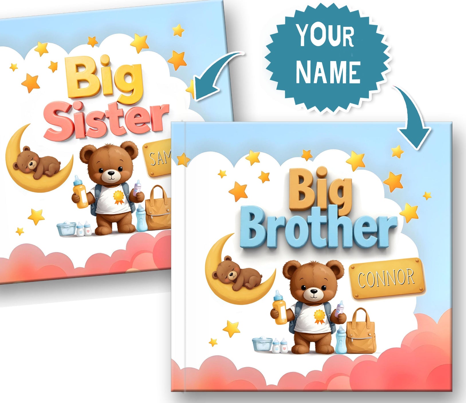 Help your child get ready for the exciting journey of becoming a big brother or big sister with our personalized Big Sibling Storybook – a heartwarming, custom photo and name story book designed to celebrate and prepare them for their new special role in the family, and perfect for welcoming their new baby brother or sister!