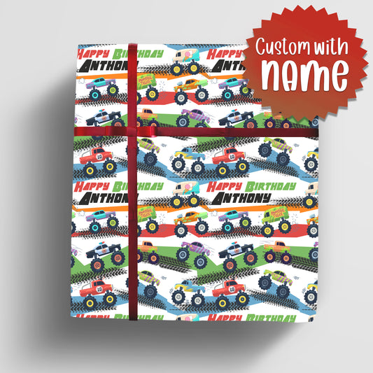 Monster Truck Wrapping Paper - Name Birthday or Christmas gift wrapRegular price From $26.99 USDRegular priceUnit price / per-